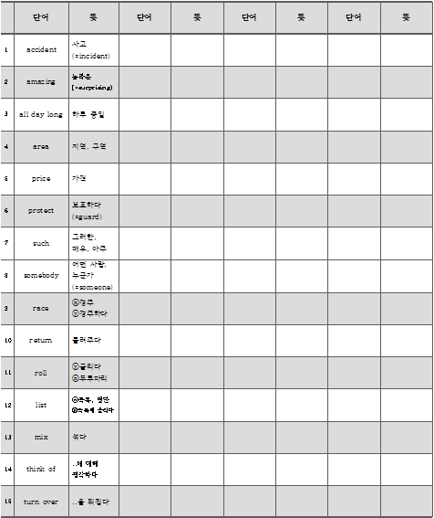 '영어 > 중학영단어' 카테고리의 다른 글