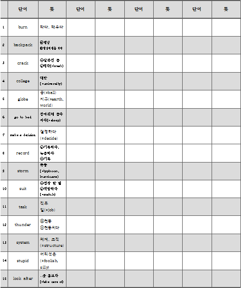 중학교 영어 단어 정리 :: 하루 10분 필수 단어 정리 Day-19